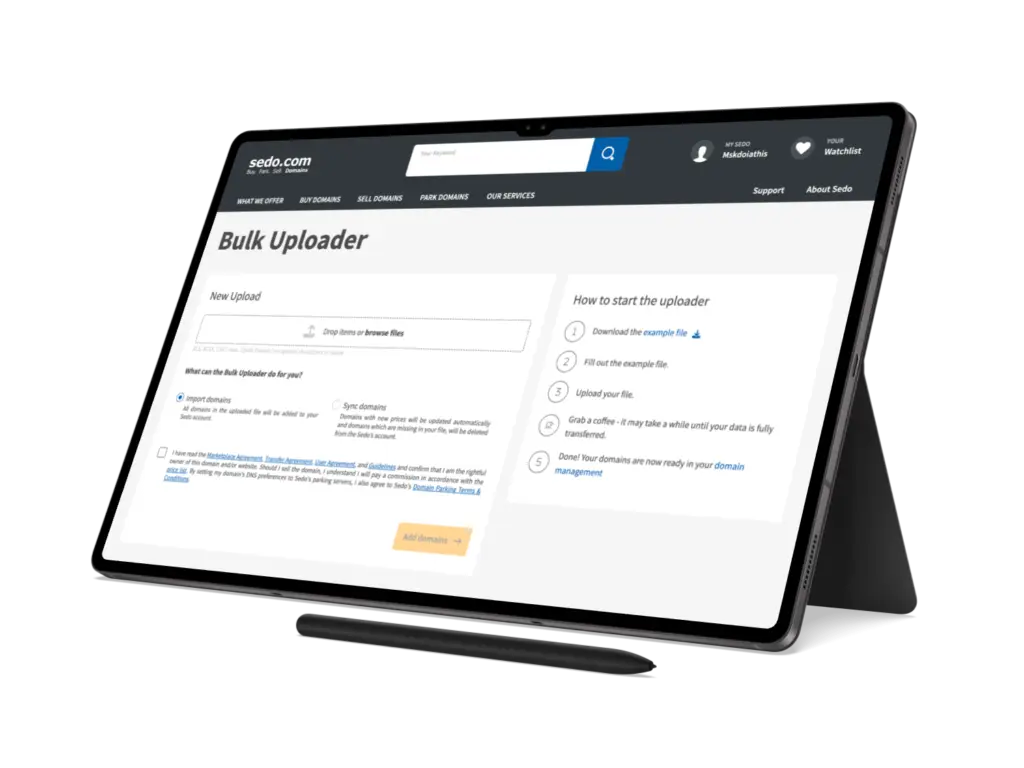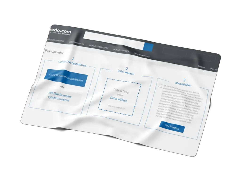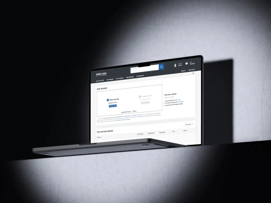 I led the UX design for a bulk domain uploader that enables users to efficiently manage their domain portfolios. This tool allows users to upload domain data via CSV files, updating multiple records simultaneously, a significant time saver for domain owners managing large inventories.